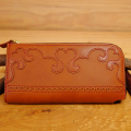 前面は女性に人気のハートのデザインとパーフォレーション(穴飾り)とピンキングを取り入れたブローギング・デザインで仕立てたスリムで可愛い財布です。両サイドには紙幣とカードが入り、センター部分の小銭入れは取り出し易い高さで設計されています。ファスナーを開けると全てが直ぐに確認出来る使い易いLファスナーのハンドメイドの革財布です。