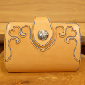 センターフラップにはオリジナルの20mm唐草コンチョがキラリと光る二つ折りの財布です。